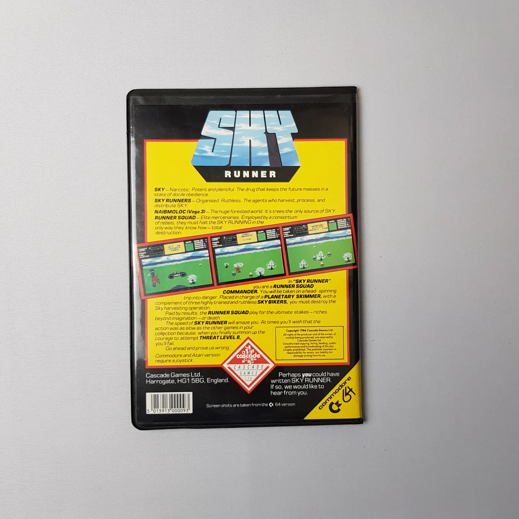 kulcsszavak | Sky Runner, Commodore 64, videójáték, kazetta, retro, gyűjtői, Cascade Games, sci-fi, klasszikus |