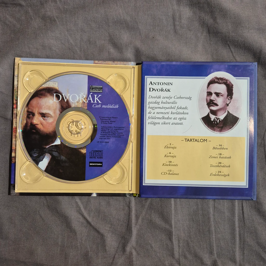 Dvořák, klasszikus zene, CD, cseh melódiák, zeneszerző, magyar, gyűjtemény, szláv táncok, humoreszk, szimfónia