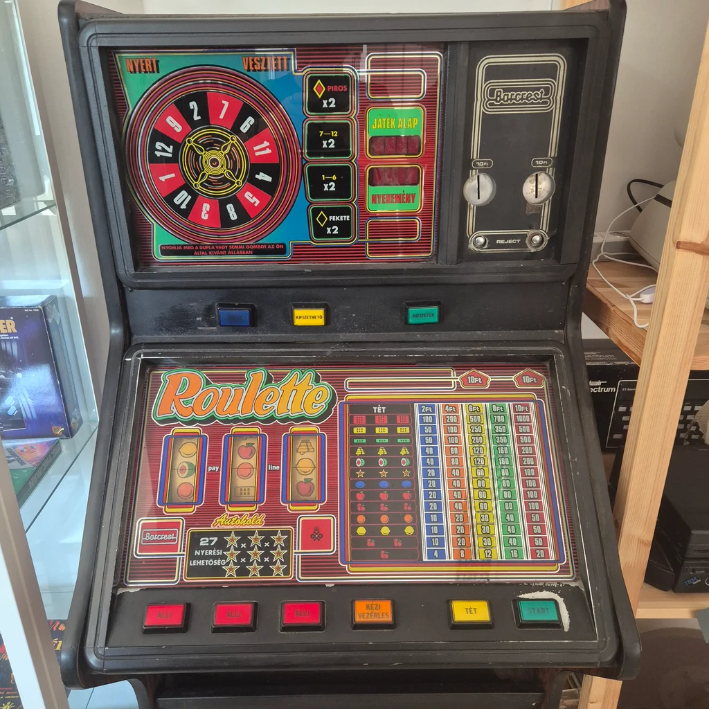 kulcsszavak | nyerőgép, Barcrest, Roulette, kaszinó, retro, vintage, játékterem, magyar, gyűjtői, pénzbedobós |