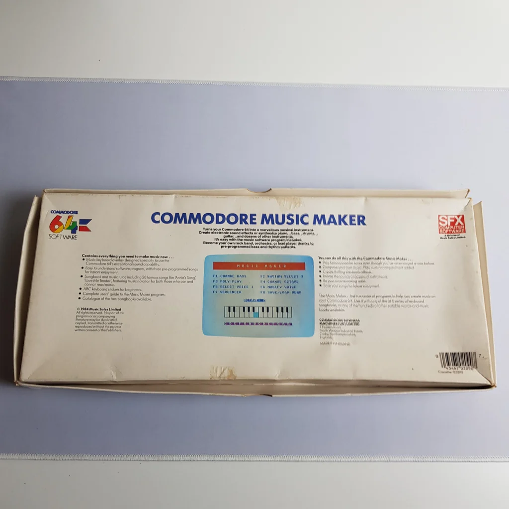 A Commodore Music Maker egy speciális zenei billentyűzet, amelyet a Commodore 64 számítógéphez terveztek. A dobozban található maga a billentyűzet, valamint egy felhasználói kézikönyv is. A termék célja, hogy a felhasználók könnyedén készíthessenek zenét a számítógépükön, akár kezdők, akár haladó zenészek. A billentyűzet műanyagból készült, és a dobozán jól látható a Commodore 64 logó, valamint a Music Maker felirat. A csomagolás és a termék is vintage hangulatot áraszt, tipikusan a 80-as évek stílusában. A termék angol nyelvű, és gyűjtők számára is értékes lehet.