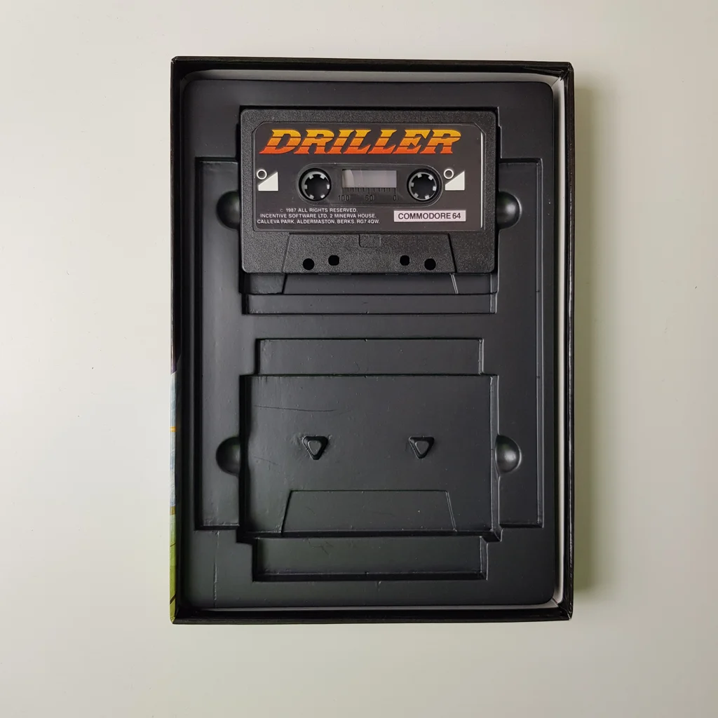 kulcsszavak | Driller, Commodore 64, videójáték, kazetta, retro, gyűjtői, Freescape, 3D, klasszikus, játék |