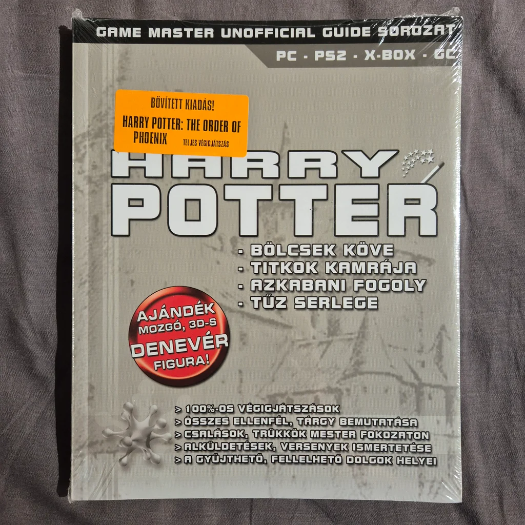 Ez a termék egy magyar nyelvű, fóliázott Harry Potter témájú útmutató könyv, amely a Game Master Unofficial Guide sorozat része. A könyv PlayStation 2, Xbox és PC platformokra készült Harry Potter videojátékok végigjátszását, titkait, trükkjeit és rejtett elemeit mutatja be. A kiadvány a Bölcsek köve, a Titkok kamrája, az Azkabani fogoly és a Tűz serlege játékokat dolgozza fel. A borítón kiemelve szerepel, hogy ajándék mozgó, 3D-s denevér figura is található benne. A könyv bővített kiadás, fóliázott, tehát bontatlan állapotú. A hátlapon rövid ismertető olvasható a tartalomról, valamint az ISBN szám is megtalálható. A könyv elsősorban gyűjtőknek és Harry Potter rajongóknak ajánlott.