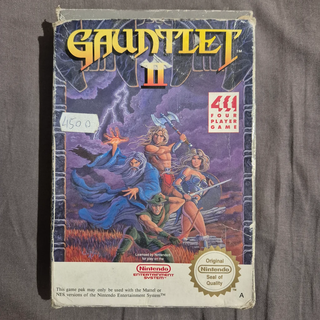 | kulcsszavak | Gauntlet II, NES, Nintendo, videójáték, retro, dobozos, gyűjtői, Mindscape, négyjátékos, klasszikus |