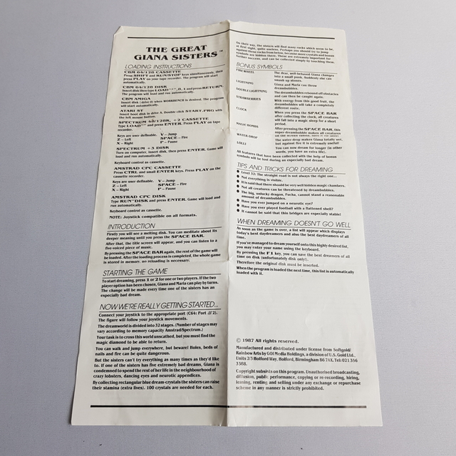 kulcsszavak | The Great Giana Sisters, Commodore 64, retro videojáték, kazetta, klasszikus játék, gyűjtői darab, platform játék |