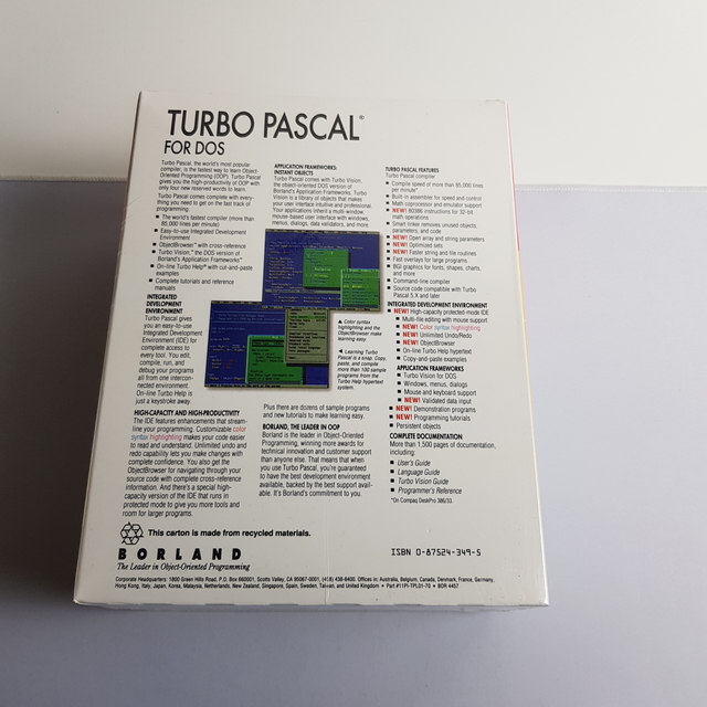 Turbo Pascal 7.0 for DOS szoftver doboza