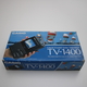 A képen egy Casio TV-1400 típusú, hordozható, színes képernyővel ellátott televízió látható. A készülék dobozán a Casio márka logója található, amely kék alapon fehér betűkkel van megjelenítve. A dobozon található illusztráció szerint a televízió képes hordozható használatra, amit a képen látható kézben tartással is alátámaszt. A készülék tervezése a régebbi stílust képviseli, és PAL rendszerre van beállítva, ami az Egyesült Királyság szabványát jelenti. Túlzó méret nélküli, így valószínűleg könnyen hordozható, utazások során használható kis képernyős televízióról van szó.