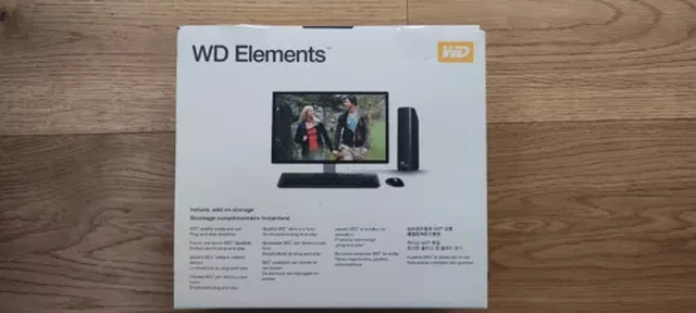 A képen egy WD Elements külső merevlemez látható, amely egyszerű, elegáns fekete dizájnnal rendelkezik. A doboz elején és hátulján is szerepel a WD logó, valamint a termék neve és specifikációi, többek között a 16 TB-os kapacitás. A termék kompakt és minimalista kialakítást kapott, amely jól illik bármilyen modern irodai vagy otthoni környezetbe. A merevlemez függőlegesen áll, ami helytakarékos elhelyezést tesz lehetővé az asztalon. Az eszköz nagy kapacitása ideálissá teszi a nagyméretű fájlok tárolására, például videók, fotók vagy biztonsági mentések esetén. A dobozon látható grafika bemutatja, hogy a merevlemez hogyan illeszkedik a számítógépes rendszerhez, jelezve a könnyű csatlakoztathatóságot és használhatóságot. Ennek a terméknek a fő jellemzője a megbízhatóság és a nagy tárolókapacitás, amely hosszú távú tárolási megoldást nyújt az adatai számára.