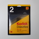 A képen egy Kodak márkájú diszkettes csomag látható, amely két darab 5,25 colos, dupla oldalas és dupla sűrűségű lemezt tartalmaz. A csomagolás fekete és sárga színű, a Kodak logó és felirat jól látható rajta. Az első képen a csomag tetején egy szám '2' jelzi, hogy két lemezt tartalmaz. A hátoldalon több nyelven is olvasható a lemezek specifikációja, mint például két lemez, dupla oldalas és 48 TPI (Tracks Per Inch) sűrűség. A csomagolás egyszerű kialakítású, mely főként a termékinformációkra és a márkajelzésre koncentrál.