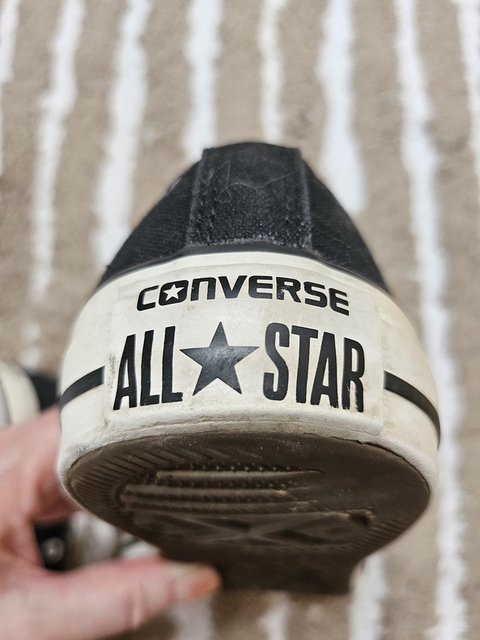 Ez egy pár Converse All Star cipő, amely klasszikus és időtlen dizájnnal rendelkezik. A cipők fekete vászonból készültek, fehér fűzőkkel és gumi orr-résszel. A sarokrészen a Converse márka neve és az All Star logó jól láthatóan jelenik meg. A cipők ideálisak mindennapi használatra, kényelmes talpuknak köszönhetően pedig hosszabb sétákra is alkalmasak. A dizájn letisztult és egyszerű, amely szinte bármilyen öltözékhez passzol. A termék elsősorban informális alkalmakra ajánlott, és nagyszerű választás lehet fiataloknak és időseknek egyaránt. Az anyaghasználatnak köszönhetően a cipők tartósak és jól szellőznek.