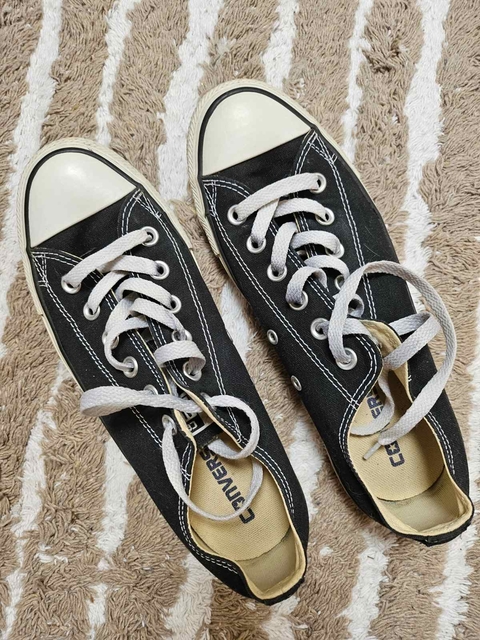 Eladó Converse All Star cipő, klasszikus fekete vászon dizájnnal, mindennapi használatra.