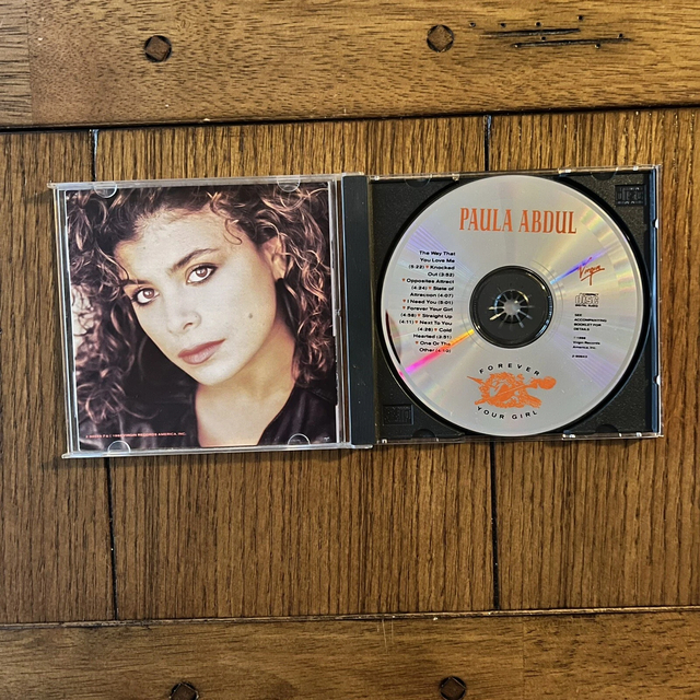 Ez a CD Paula Abdul 'Forever Your Girl' albuma, amely a 1980-as évek végén jelent meg. A borítón Paula Abdul látható egy közeli portréfotón. Az album olyan slágereket tartalmaz, mint a 'Forever Your Girl' és a 'Straight Up'. A dalok listája a hátsó borítón olvasható. A tok átlátszó műanyagból készült, és az album művészi megjelenítése a korra jellemző stílust képviseli. Az albumot a Virgin Records adta ki, és a CD különféle zenei stílusokat ötvöz, beleértve a pop és dance elemeket is. Az album szövege angol nyelven íródott.