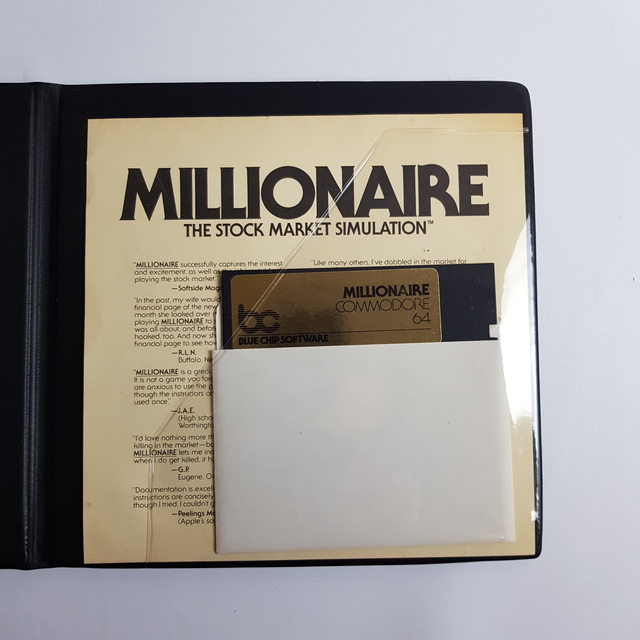 kulcsszavak | Millionaire, tőzsde, szimuláció, Commodore 64, retro játék, Blue Chip Software, floppy lemez, gyűjtői |