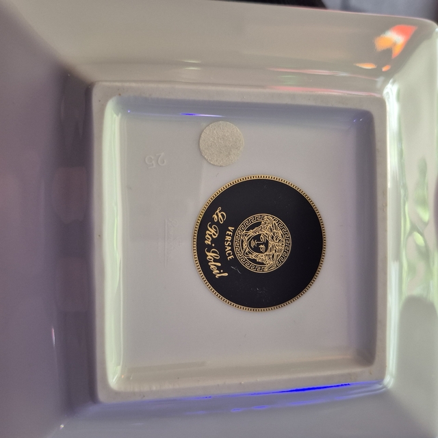 Ez a Rosenthal márkájú, négyzet alakú porcelán tál gazdagon díszített, klasszikus arany és kék mintákkal, valamint vörös középrésszel. A tál belső oldalán részletes, barokk stílusú ornamentika látható, amely elegáns és exkluzív megjelenést kölcsönöz a tárgynak. A hátoldalon a Rosenthal márkajelzés és a gyártói pecsét található, amely igazolja a termék eredetiségét. A tál kiváló minőségű porcelánból készült, és dísztárgyként vagy különleges alkalmakra is ideális választás lehet. A tál mérete körülbelül 25 cm x 25 cm.