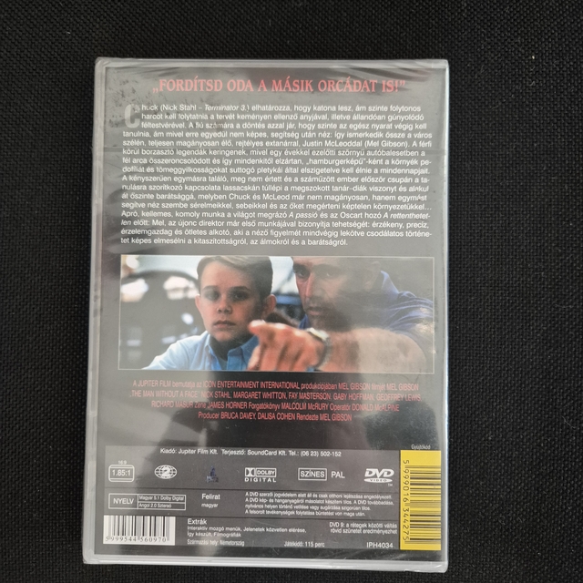 Ez a termék Az arcnélküli ember című film DVD kiadása, amelyen Mel Gibson főszereplésével látható. A borítón magyar szinkron és felirat is szerepel, valamint kiemelik, hogy a film csodálatos és Mel Gibson felejthetetlen alakítást nyújt benne. A hátoldalon rövid ismertető olvasható a film történetéről, valamint technikai információk, mint például a PAL rendszer, a magyar és angol hang, illetve a magyar felirat. A DVD tok átlátszó műanyagból készült, a borító színes nyomtatású papír. A film családi dráma, amely egy tanár és egy fiú kapcsolatáról szól. A termék használt, de jó állapotúnak tűnik, és gyűjtők számára is érdekes lehet.