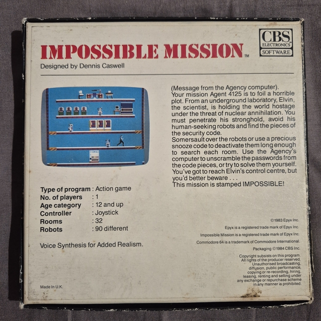 kulcsszavak | Impossible Mission, Commodore 64, Epyx, kazetta, retro játék, gyűjtői, akciójáték, vintage, dobozos |