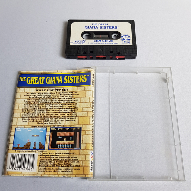 kulcsszavak | The Great Giana Sisters, Commodore 64, kazetta, Rainbow Arts, retro játék, platformjáték, vintage, gyűjtői |